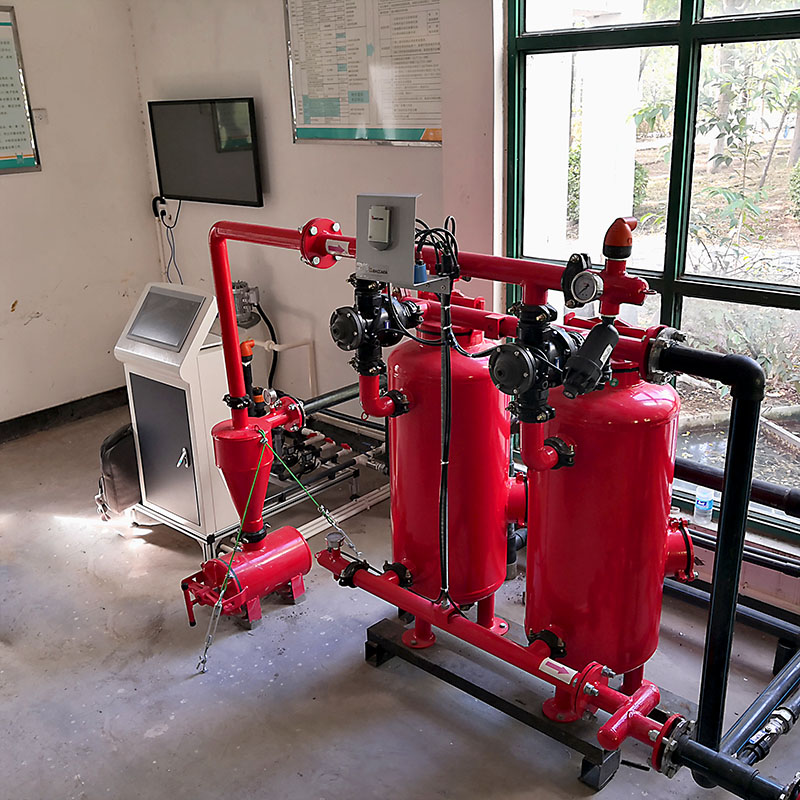 该项目由我司负责,主要用于香蕉爱视频系统控制流程教学展示。配套5.5KW水泵,PVC输水管道,进口喷头0.4m³/H, 滴灌管 2L/H,进排气阀1寸,泄水阀1寸,砂石+离心+叠片三级过滤。